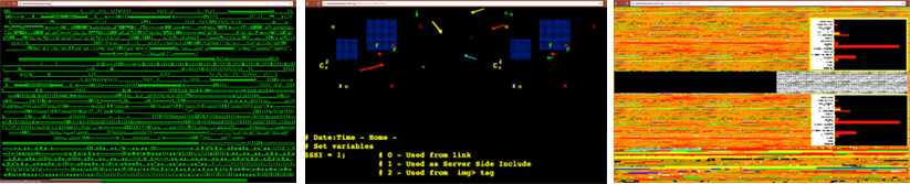 Si hacemos una búsqueda de este tipo de piezas artísticas, encontraremos varios artistas. En este caso me quiero detener en la famosa pieza del dúo de artistas llamados Jodi– Joan Heemskerk (Jo) y Dirk Paesmans (Di) –. A ellos se los considera artistas claves del Net.art desde mediados de los años 90. Se trata de wwwwwwwww.jodi.org.